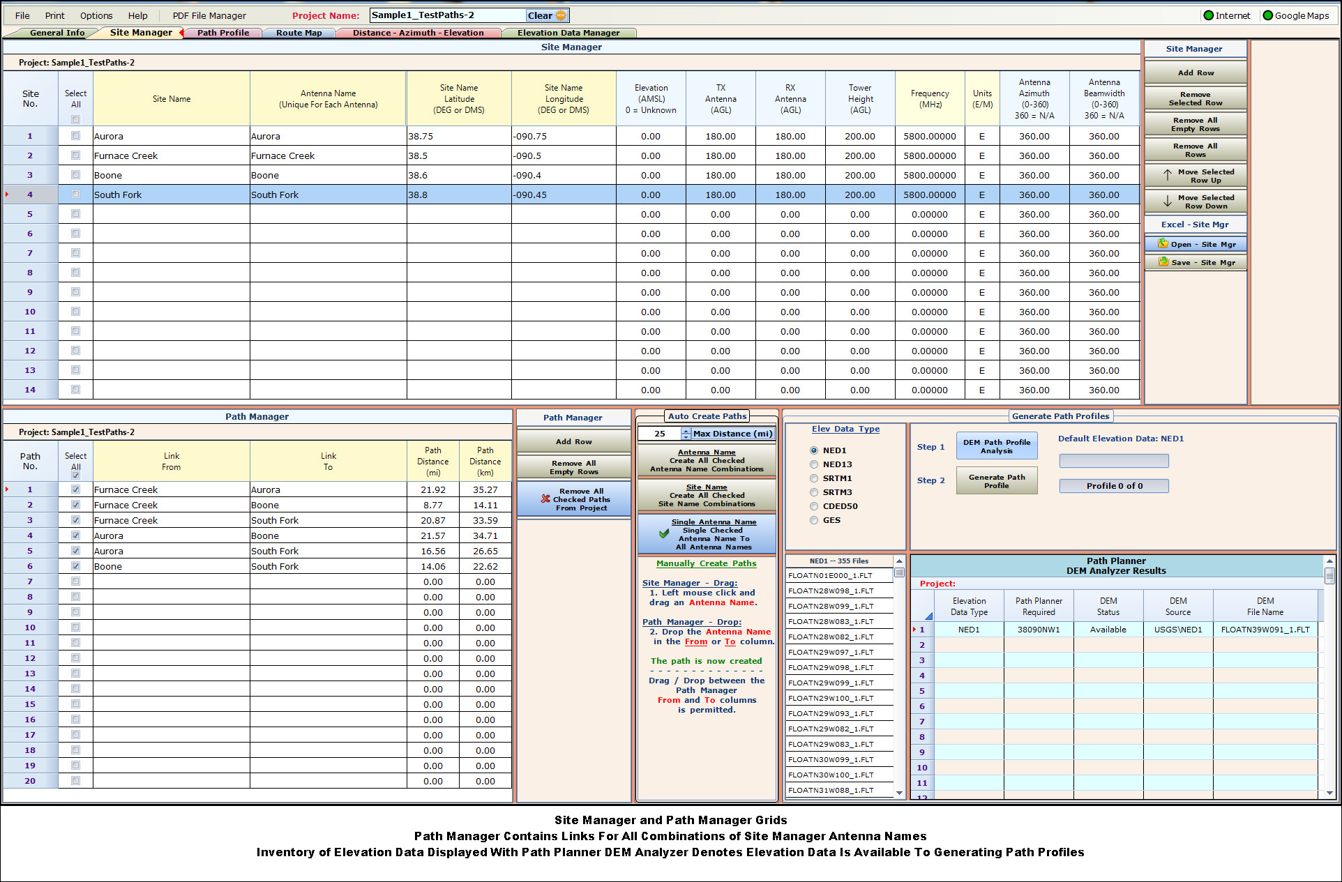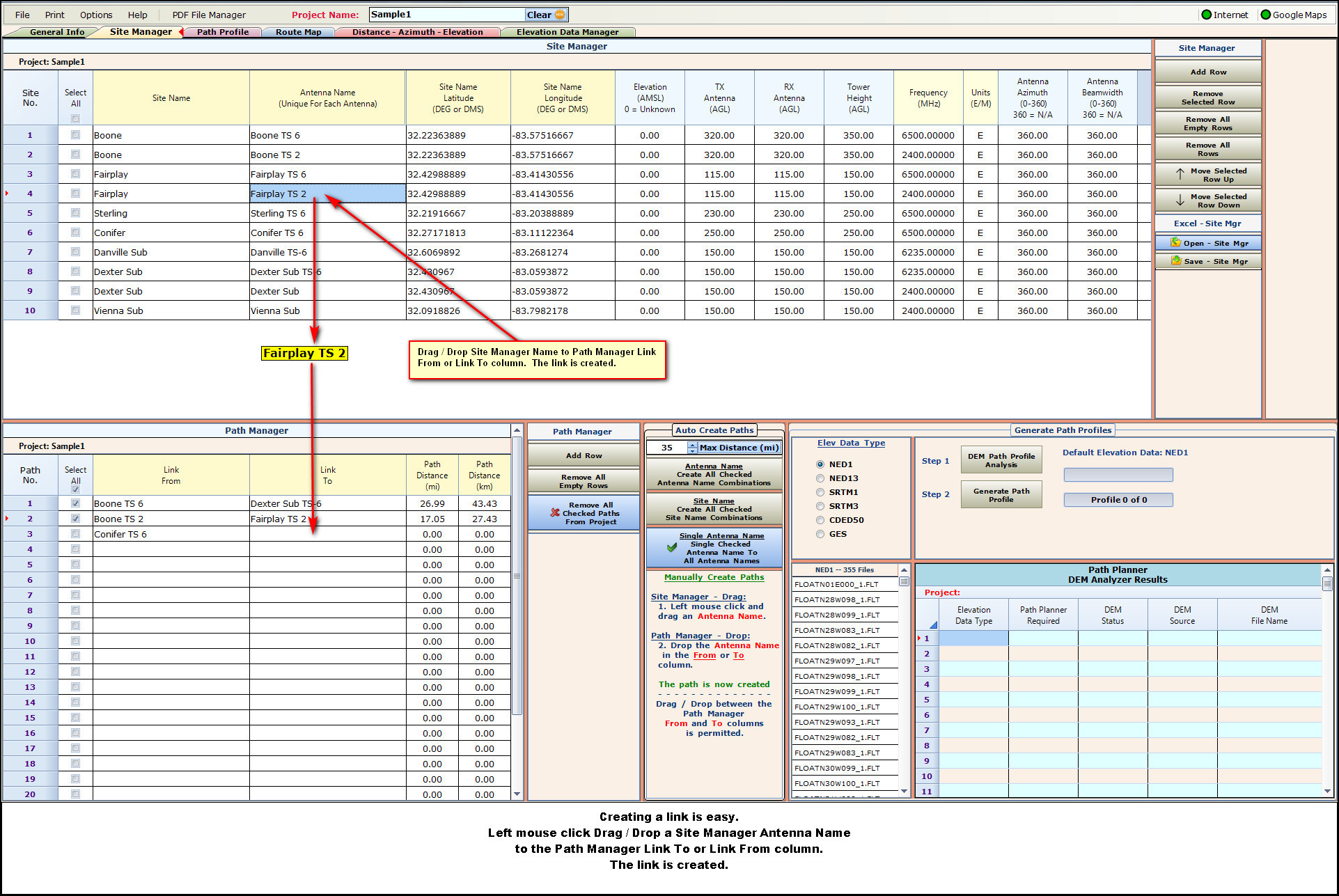 Drag / Drop two Site Manager Antenna Names to the Path Manager From / To and the link is created.